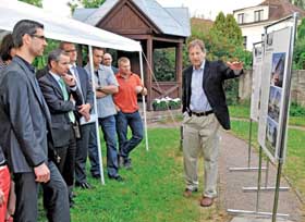 Slavné pražské vily Při otevření výstavy "Slavné pražské vily", již organizovala agentura Foibos s Hypoteční bankou, se v pražské Trmalově vile setkali bankéři s obchodními partnery. Na snímku generální ředitel Hypoteční banky Jan Sadil (druhý zleva) poslouchá výklad architekta Zdeňka Lukeše.