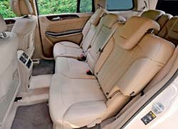 Přes svou mohutnost se vzhledově třídě ML podobá, zejména při čelním pohledu není snadné oba vozy od sebe odlišit. Auto dostalo LED pro denní svícení a oblé tvary. Boční profil a mohutná záď s pořádným převisem však odhalují karty nového GL. Je jasné, že uvnitř řidič najde prostorný interiér, který nabídne tři řady sedadel v uspořádání 2-3-2. Nemá smysl pochybovat o tom, že vpředu je místa dostatek, ale i do druhé a třetí řady se pohodlně usadí urostlí lidé.