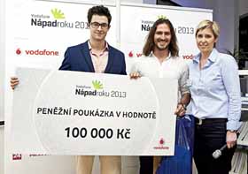 Nápadem roku je beton, který propouští světlo Vítězi soutěže Vodafone Nápad roku 2013, v rámci které se oceňují nejlepší podnikatelské záměry, se stali Ladislav Eberl (vlevo)a Jiří Peters (uprostřed) s projektem LiCrete. Vyvinuli beton, který umí propouštět světlo. Cenu převzali od Vladimíry Doleželové (vpravo), brand manažerky společnosti Vodafone. Akci moderoval redaktor Ekonomu Miloš Čermák...