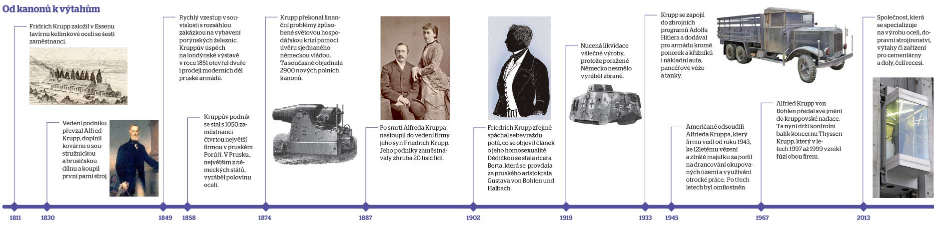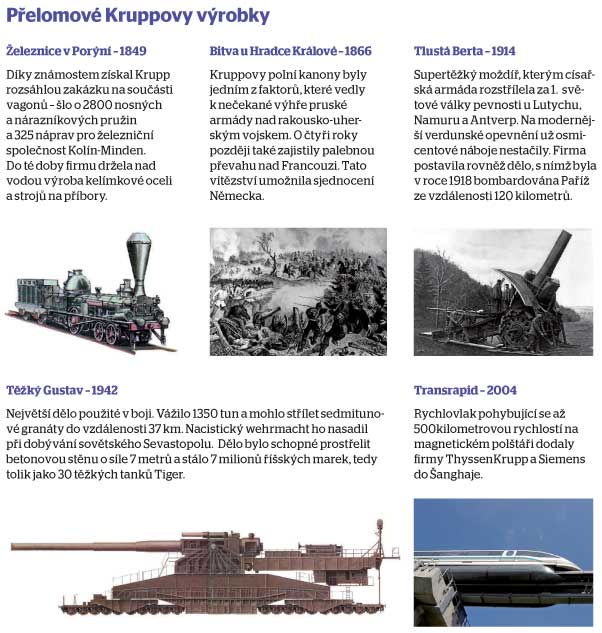 "V oceli porážíme celý svět," napsal německý ekonom Lothar Bucher v roce 1862. Bylo to hlavně díky Kruppovi, kterému byla ochotna pomáhat i německá vláda. Když se za světové krize v roce 1873 dostal do obtíží, přispěchala s velkorysou finanční pomocí. Nemohla jinak, podnikatel se krátce předtím zavázal přezbrojit císařskou armádu a dodat 2900 nových děl.