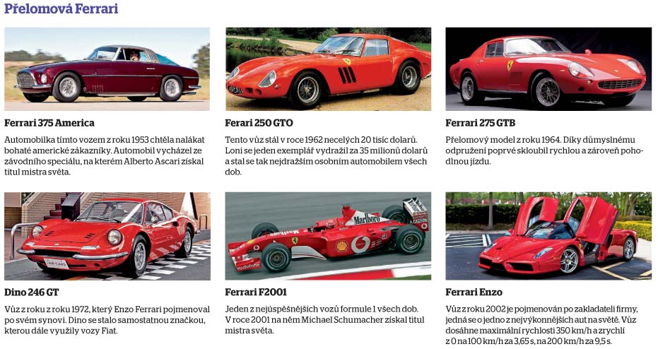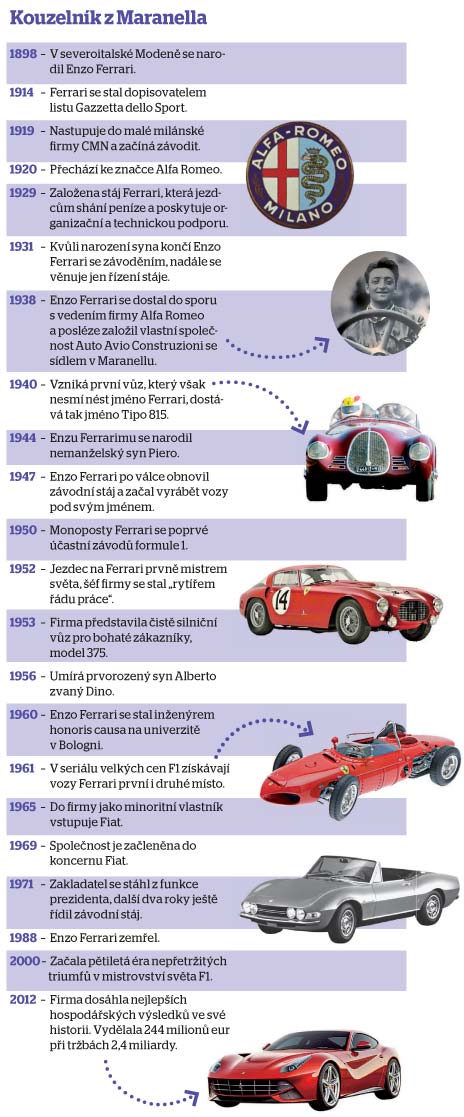 Enzo Ferrari, zakladatel stejnojmenné automobilové značky, poskytoval rozhovory jen výjimečně. Tajemství halí i datum jeho narození. Tvrdil, že se narodil 18. února 1898. V důsledku sněhové bouře však jeho otec mohl narození úředně registrovat až o dva dny později, takže do dokladů byl zapsán 20. únor. Když v roce 1988 ve věku 90 let Enzo Ferrari skonal, pozůstalí splnili jeho přání a o úmrtí informovali také s dvoudenním zpožděním. Jeho vozy Ferrari se staly symbolem úspěchu a rychlosti. Loňský rok byl pro značku nejlepší v historii, dosáhla rekordních prodejů v Číně, USA, Německu a Británii. Její zakladatel však původně neměl v úmyslu dobývat svět automobily vlastní konstrukce. Jeho cílem bylo vytvořit tým závodníků, který by byl nejlepší na světě.