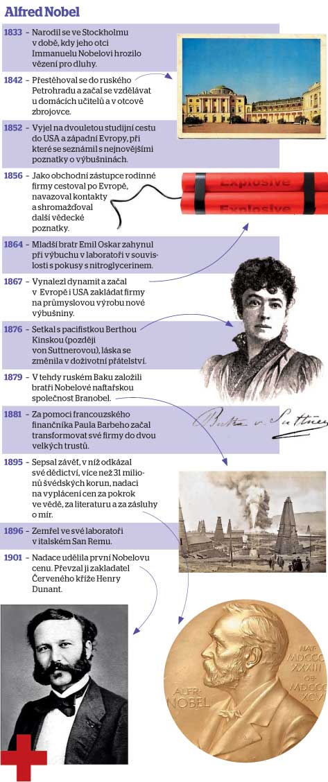 Osobnost objevitele "bezpečné" výbušniny dynamitu Alfreda Nobela jako by byla utkána ze dvou substancí. Z té první byl racionální vědec, vynálezce, energický byznysmen i miláček vojáků. Díky ní dokázal během několika let ze země vydupat ohromné průmyslové impérium pokrývající celý svět. Z té druhé byl zase osamělý melancholik, milovník literatury a sociálních utopií, který po vzoru osvícenských filozofů nábožně věřil v sílu lidského poznání. Prosazoval myšlenku, že soukromé bohatství má sloužit pokroku, humanitě a odstranění chudoby.