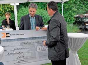 Milionová podpora pro Linku bezpečí Společnost Europe Easy Energy věnovala Lince bezpečí milion korun. Na snímku předává generální ředitel firmy Europe Easy Energy Kamil Ouška (vpravo) šek řediteli Linky bezpečí Richardu Schinkovi.