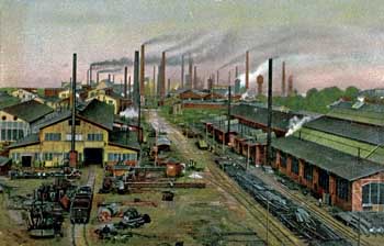 Železárny ve Vítkovicích, které Gutmannové vybudovali, na pohlednici z roku 1910.