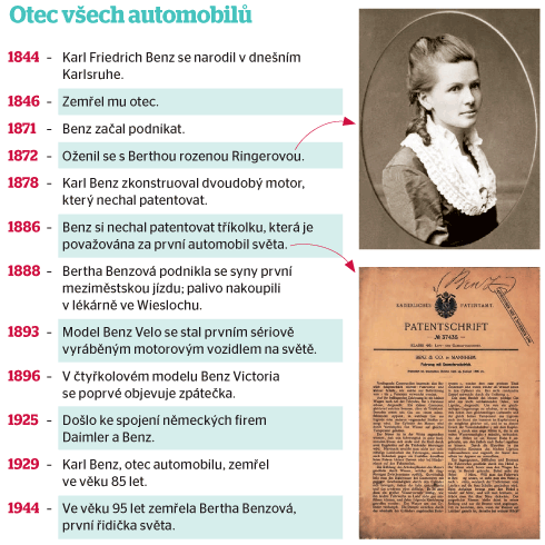 Karl Benz si v roce 1886 nechal patentovat první automobil na světě.
