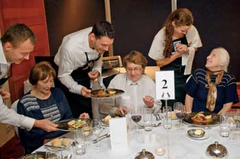 Manažeři v roli číšníků Šéfové Allianz pojišťovny, Hilton Hotels in Prague a poradenské firmy KPMG v rámci akce Trochu jiná večeře obsluhovali 50 seniorů. Na snímku zleva v roli číšníků předseda představenstva Allianz Jakub Strnad, ředitel marketingu Allianz Pavel Jechort a Česká Miss World 2014 Tereza Skoumalová.