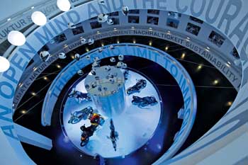 Mnichovské muzeum BMW ukazuje návštěvníkům i motocykly bavorské značky. Někdejší levné automobily BMW přitom využívaly motocyklové motory.
