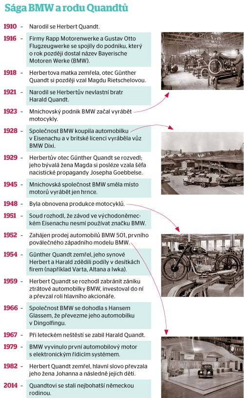 Prodej byl již na spadnutí, když firmu zachránil Herbert Quandt, jeden z akcionářů. Tento téměř slepý průmyslník, jenž krásu automobilových karoserií musel hodnotit po hmatu, nedal na rady svých finančních odborníků. Stal se hlavním majitelem bavorské společnosti a svojí investicí jí zajistil další rozvoj. Díky tomu jsou dnes Quandtovi nejbohatší rodinou v Německu.