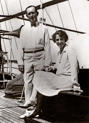 Od roku 1920 Guglielmo Marconi žil nejraději na moři, respektive na palubě přepychové jachty Elettra. Na snímku je se svojí manželkou Beatricí, s níž se ale později rozvedl.