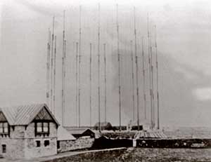Kruhový vysílač v Poldhu v Cornwallu, odkud vynálezce v prosinci 1901 vyslal první rádiový signál k americkým břehům. Šlo o definitivní důkaz, že radiotelegrafie bude využitelná na moři.