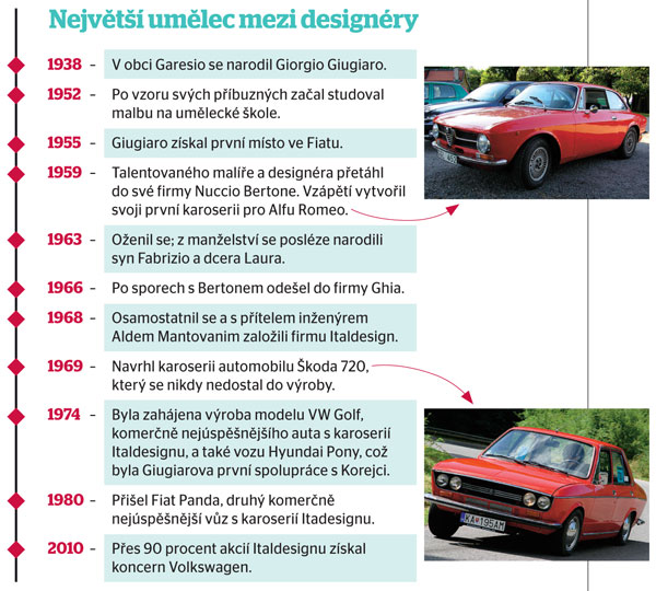 Vedení automobilky proto přizvalo ke spolupráci mladého italského karosáře a podnikatele Giorgia Giugiara. Výsledkem byl VW Golf, jenž vynesl německou společnost na automobilový Olymp. Ital pak díky úspěchu Golfu získával zakázky z celého světa, takže navrhl zhruba 80 sériových vozů.