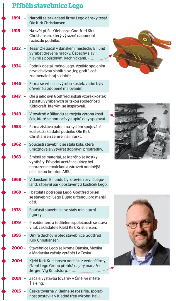 Společnost Lego zaměstnává více než 12 tisíc lidí, z toho dva tisíce v Česku. Letos v dubnu zdejší výrobu ještě rozšířila. Lego v Kladně postavilo třetí halu a přibýt má dalších 600 zaměstnanců. "Zdejší lidé mají kvalitní technické vzdělání. Když potřebujeme najít inženýra do výroby, nemáme problém," pochvaloval si nedávno viceprezident firmy Lego Bali Padda v rozhovoru Hospodářských novin.