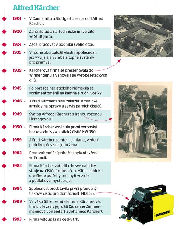 Alfred Kärcher firmu založil, světovou proslulost jí však zajistila až podnikatelova žena Irene.