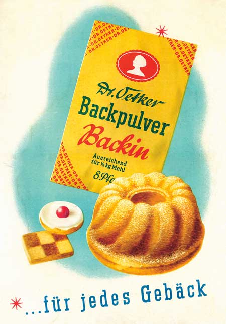 K rozšíření Oetkerova prášku, který se nazýval Backin, přispělo rovněž to, že ho od počátku prodával v praktickém malém balení, jehož obsah se skvěle hodil k pečení pro čtyřčlennou rodinu. Jeden sáček byl určen například na jeden koláč, což bylo každému srozumitelné. Výsledkem bylo dobře nakypřené těsto, přičemž prášek byl trvanlivý a měl zcela neutrální chuť.