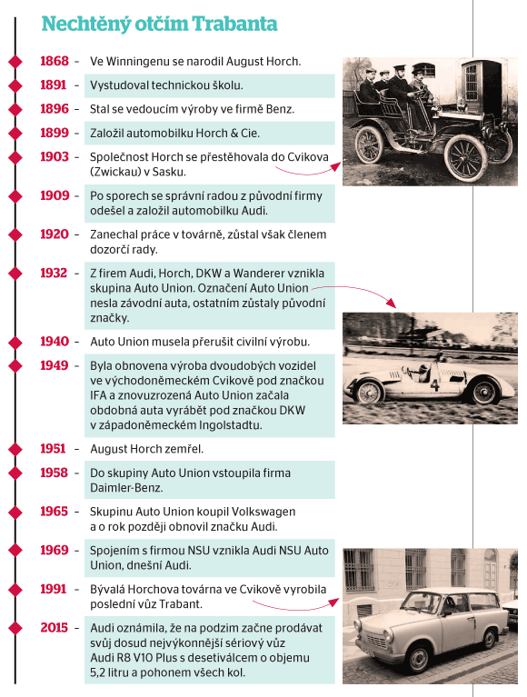 Horchův odkaz však dodnes žije v symbolice současné značky Audi, jež se v západním Německu zrodila z trosek skupiny Auto Union. Z těch čtyř kruhů na firemním emblému totiž dva připomínají právě společnosti, které založil.