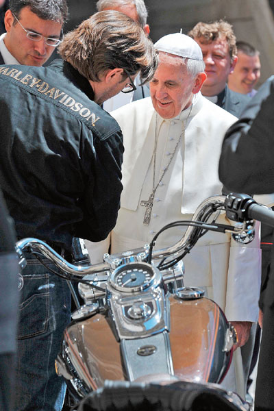 Papež František dostal v roce 2013 motocykl Harley-Davidson.