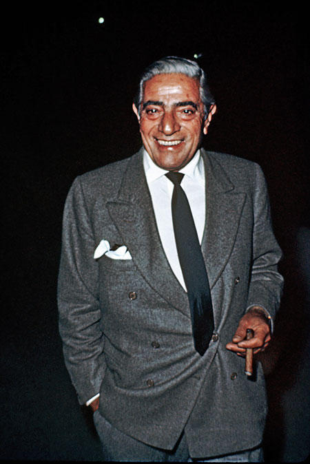 Peníze si ukládal na účty ve více než 200 bankách a do přepychové jachty Christine O. Na ni rád zval celebrity včetně Winstona Churchilla, Evy Perónové či Franka Sinatry. Všechny je tam ohromoval luxusem, například vanami z mramoru, z něhož byl postaven starověký aténský Parthenon, či schodišti ze stříbra a polodrahokamů.
