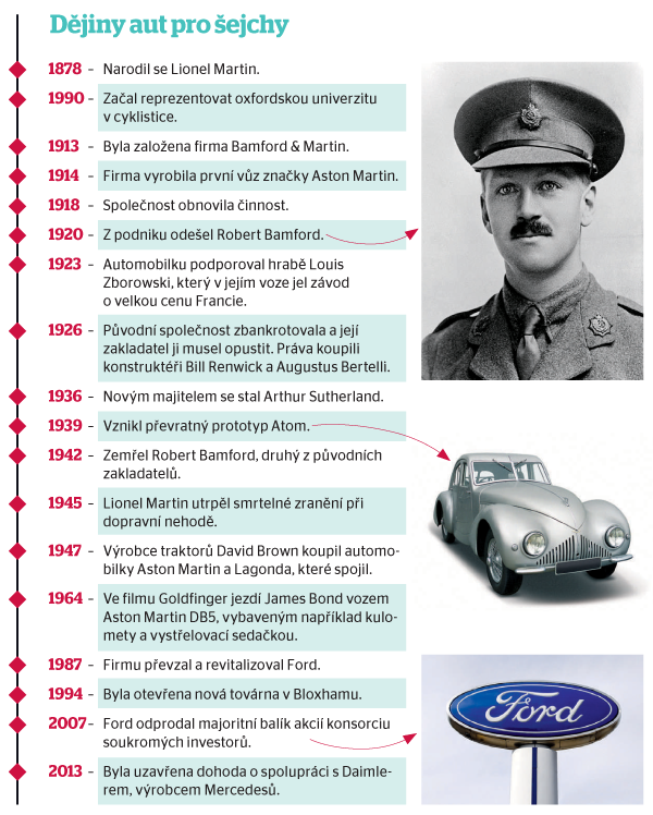 Automobilku Aston Martin proslavil hlavně špion James Bond. Její vozy patří k filmovému agentovi 007 stejně jako martini s vodkou ("protřepat, nemíchat!") či krásné ženy. Bez vymyšlené nesmrtelné postavy by už možná automobilka ani neexistovala. Lionel Martin, který ji založil, byl ovšem celkem obyčejným smrtelníkem. Jen by se dalo říct, že zemřel na nedostatek benzinu.