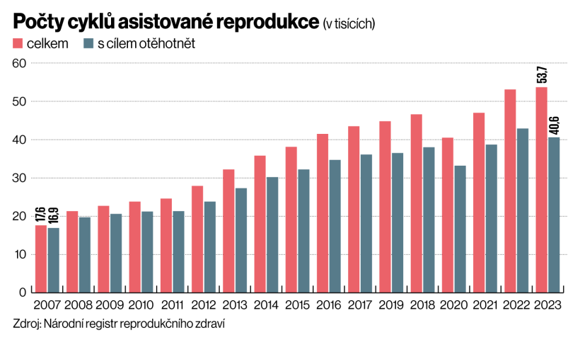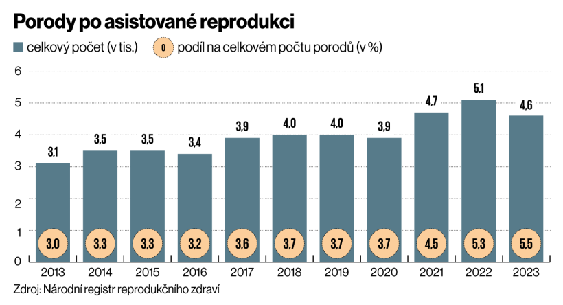 Zatímco v roce 2021 se narodilo téměř 112 tisíc dětí, loni to bylo jen 84 tisíc. Nejméně přinejmenším za posledních dvě stě let. Zároveň je tomu letos třiačtyřicet let, co se na území Česka narodilo první dítě z umělého oplodnění. Od té doby se počet dětí narozených díky asistované reprodukci takřka každoročně zvyšuje. Již jsou silnou skupinou, tvoří více než pět procent všech novorozenců, přičemž jejich podíl se za posledních patnáct let zdvojnásobil.