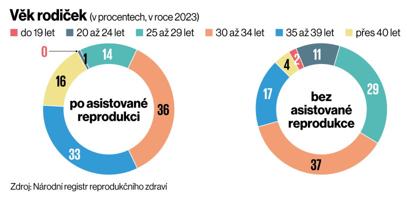 Poptávka po asistované reprodukci v Česku roste. Lidé ze specializovaných klinik se shodují v tom, že se postupně zvyšuje průměrný věk pacientek podstupujících léčbu neplodnosti. Za poslední dekádu zhruba o dva roky, nyní se pohybuje kolem 37 až 38 let. U žen, které přijímají darovaná vajíčka, dokonce překračuje čtyřicítku. Podle statistik je průměrný věk prvorodiček po asistované reprodukci o pět let vyšší než u žen, které otěhotněly spontánně. Postupně totiž roste úspěšnost využívaných metod. Odborníci proto vedou debaty, zda uvolnit některá z omezení v tomto druhu lékařské pomoci.